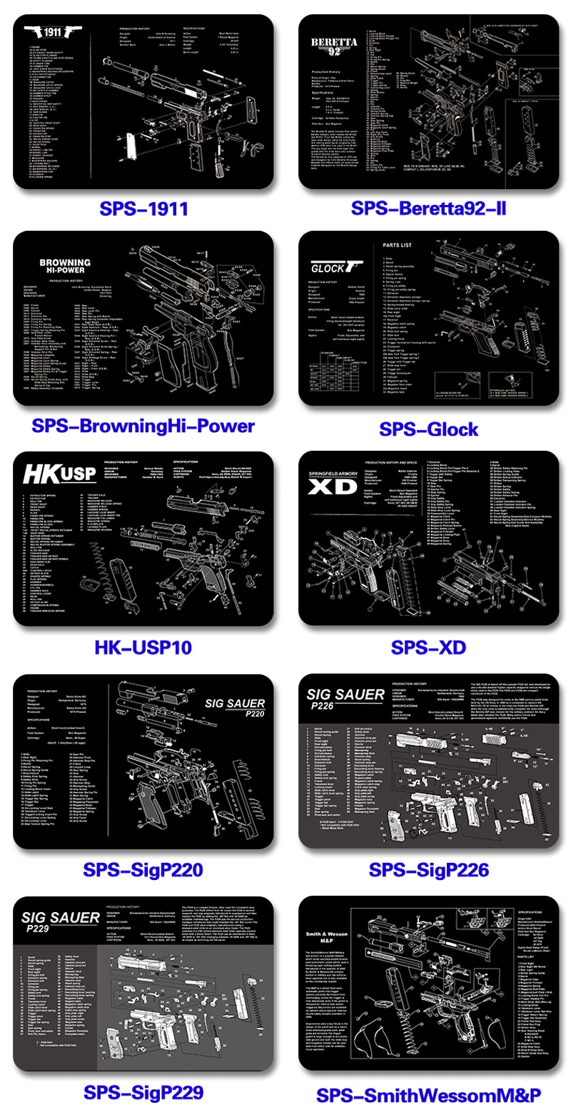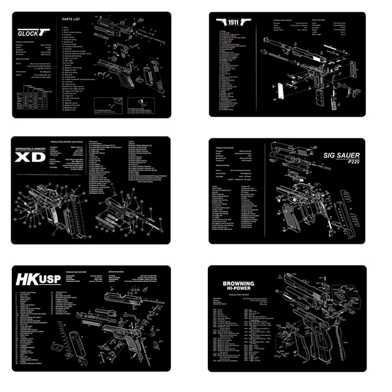 Ar15 Ak47 Gun Cleaning Rubber Mat With Parts Diagram Instructions Mouse Pad For Glock 17 19 1911 Beretta 92 Sig Sauer P320 Cz 75 Hunting Gun Accessories Aliexpress