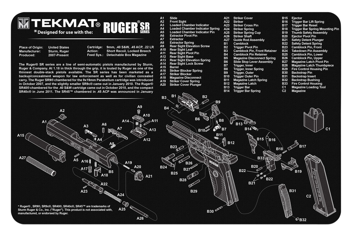 Tekmat Browning Hi Power Cleaning Mat 11 X 17 Thick Durable Waterproof Handgun Cleaning Mat With Parts Diagram And Instructions Armorers Bench Mat Black Prices Shop Deals Online Pricecheck