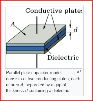 k = relative permittivity of the dielectric material between the plates. k=1 for free space, k>1 for all media, approximately =1 for air. The Farad, F, is the SI unit for capacitance, and from the definition of capacitance is seen to be equal to a Coulomb/Volt.. Any of the active parameters in the expression below can be calculated by clicking on it.