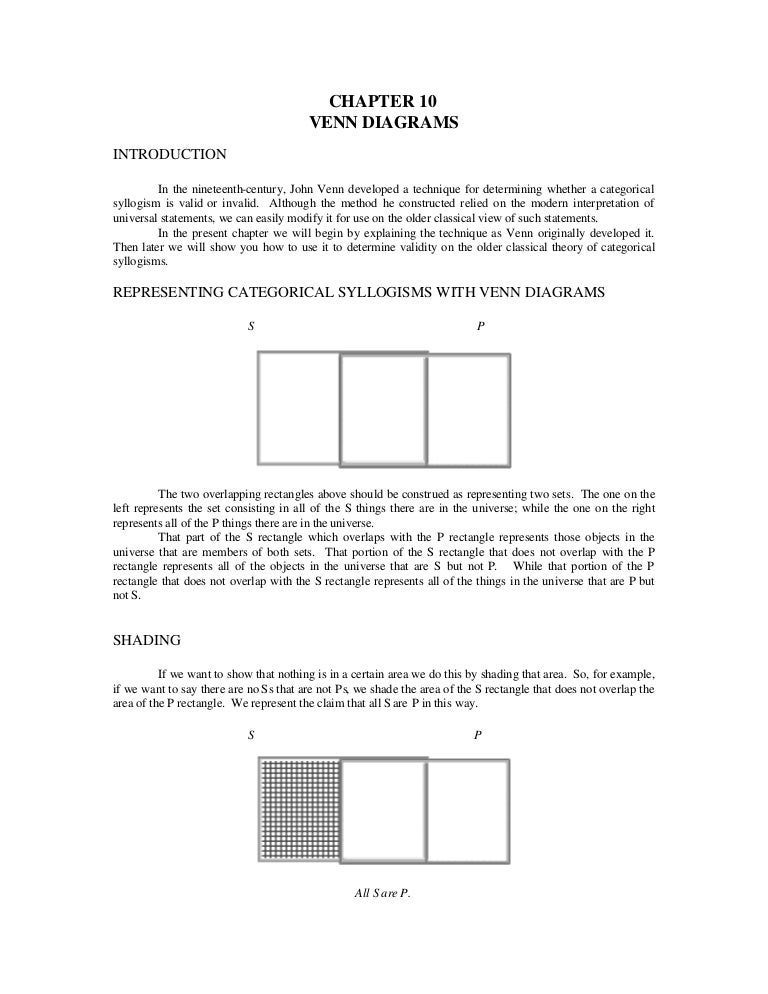 Venn diagram, graphical method of representing categorical propositions and testing the validity of categorical syllogisms, devised by the English logician ... Tool to test or create syllogisms. A syllogism is a sequence of affirmations allowing to make a deduction. All men are mortal. Socrates is a man. Mar 11, 2020 · @stephaniecbarber: “First Annual Law School Fair: coronavirus style. @uark.prelawsociety it’s been great being your…” Written with a capital letter and the variables listed as arguments, like \(P(x,y,z)\). Venn diagram, graphical method of representing categorical propositions and testing the validity of categorical syllogisms, devised by the English logician and philosopher John Venn (–). the G EOQUERY functional querylanguageinWongandMooney(2006)).