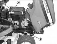 The engine identification number (B) is located on the engine housing. Click here for 54 mower deck parts for X530. Click here for 2 Bag Rear Bagger Parts for X530. Click here for 3 Bag Rear Bagger Parts for X530. Click here for 47-inch Snow Blower Parts for X530. Click here for 48-inch Front Blade Parts for X530.