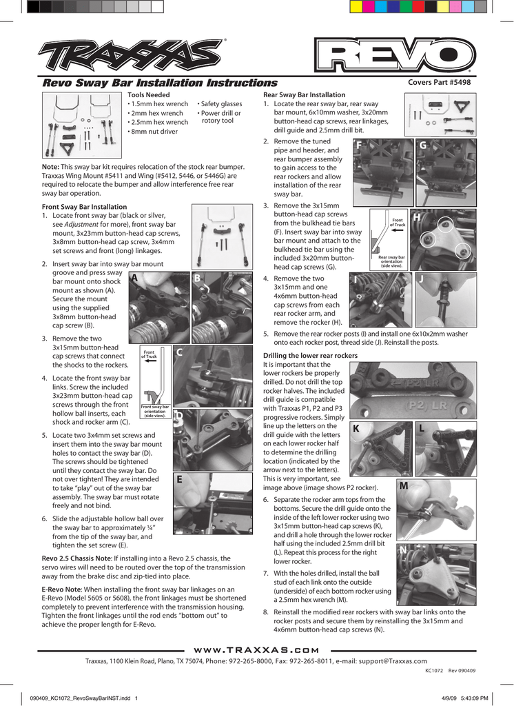 Revo 3.3 Parts List Parts shown in bold are optional accessories. Part categories and individual part listings are arranged alphabetically. ... For assistance call 1-888-TRAXXAS, or e-mail Traxxas anytime at support@Traxxas.com REV. 071119 1719 Air Filters 5329 5264 Air filter housing/ foam insert/ Revo air filter base (angled)/ cable