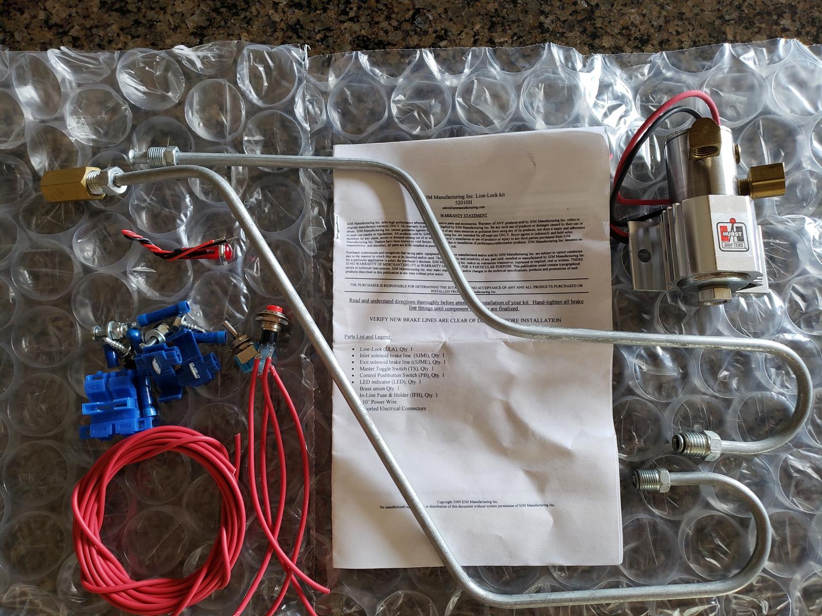 The line-lock is nothing but a solenoid valve in the front brake lines which is energized (closes) on pressing the switch near the shifter. It is used at the line and in the water box. I've been looking at the Hurst roll control/line lock kits on Summit and eBay, then looked at the Hurst plumbing diagram and have a problem with it.....someone on another thread said something about a car not passing tech IF you went from the master cylinder to the roll control/line lock solenoid, then to a proportioning valve which splits to the right front and left front brake lines.