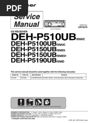 DEH-P5100UB English Français Español. Thank you for purchasing this PIONEER product. Please read through this manual before using the product for the first time, to en-sure proper use. After reading, please keep the manual in a safe and accessible place for future reference. Before You Start Information to User 5 For Canadian model 5 About this unit 5 Features 5 After-sales service for ...