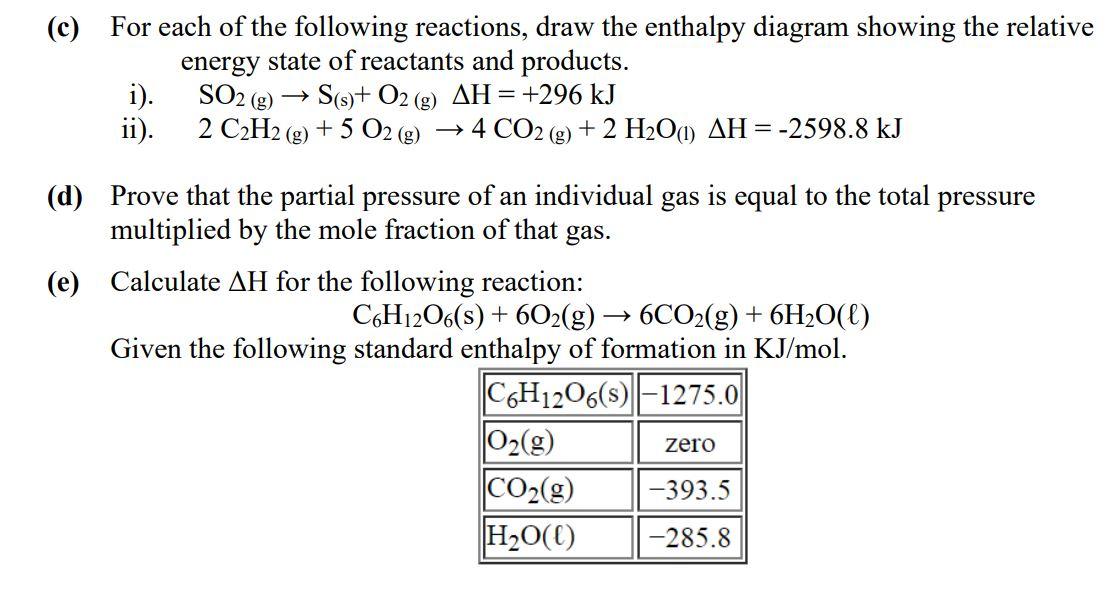 Solved C For Each Of The Following Reactions Draw The Enthalpy Diagram Showing The Relative Energy State Of Reactants And Products Soz G Sts 0z G Ah 296 Kj 2 Czhztg 5