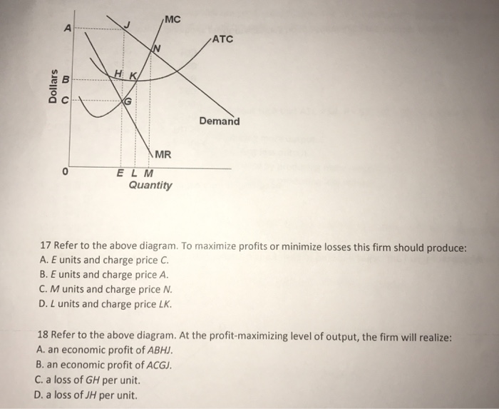 Refer to the above diagram. To maximize profits or minimize losses this firm should produce: a) E units and charge price C. b) E units and charge price A. c) M units and charge price N. d) L units and charge price LK. A. If a pure monopolist is producing at that output where P = ATC, then: a) its economic profits will be zero. b) it will be realizing losses. c) it will be producing less than ...