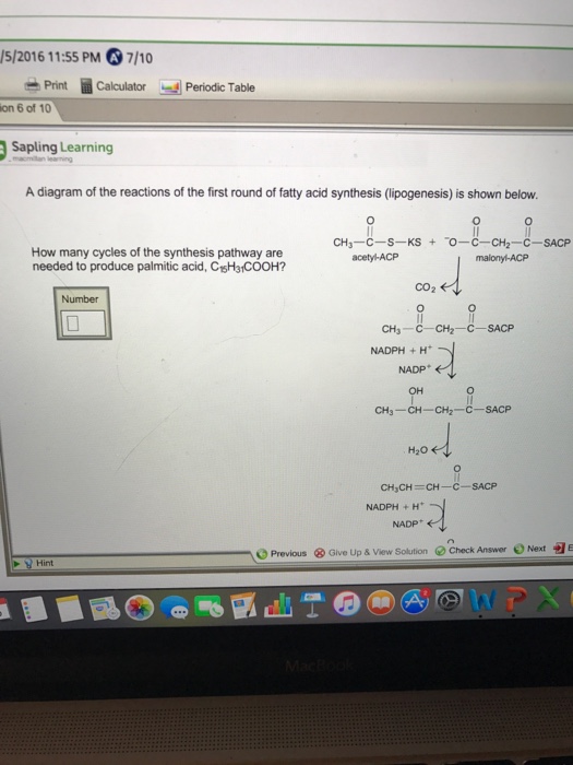 A diagram of the reactions of the first round of fatty acid synthesis (lipogenesis) is shown below. How many cycles of the synthesis pathway are needed to produce myristic acid, C13H27COOH? (14 carbons) This is often related to a diagram of the reactions of the first round of fatty acid synthesis (lipogenesis) is shown below.. Linked to a diagram of the reactions of the first round of fatty acid synthesis (lipogenesis) is shown below., Acid reflux disorder is said while using the dilemma of acidic soreness, coronary heart burn up and heartache. Transcribed image text: A diagram of the reactions of the first round of fatty add synthesis (lipogenesis) is shown below. How many cycles of the synthesis ... Transcribed image text: A diagram of the reactions of the first round of fatty acid synthesis (lipogenesis) is shown below. How many cycles of the synthesis ...