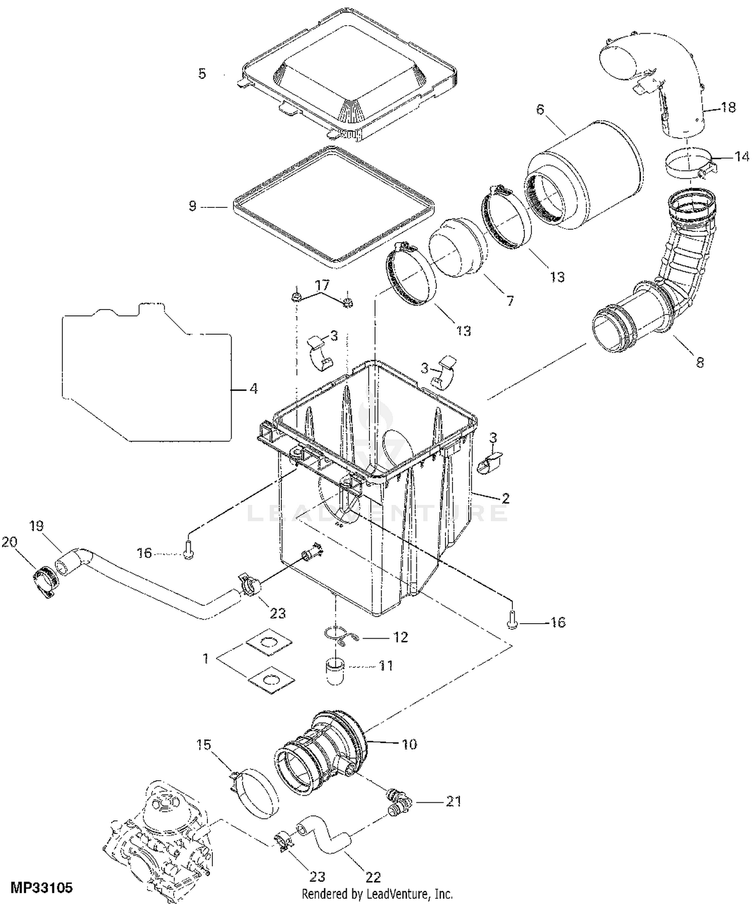 John Deere Trail Buck 650 Utility Atv Pc9361 2005 Model M0ggvc5 010000 019999 Trail Buck 650 Utility Atv Pc9361 2005 Model M0ggvc5 020000 999999 Mid Year Model Trail Buck 650 Utility Atv Pc9361 Air Cleaner Fuel Air