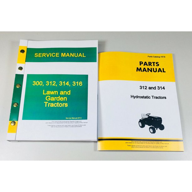 john deere model: 300,312,314 & 316 hydrostatic tractors this is a manual produced by jensales inc. without the authorization of john deere or it's successors. john deere and it's successors are not responsible for the quality or accuracy of this manual. trade marks and trade names contained and used herein are those of others,