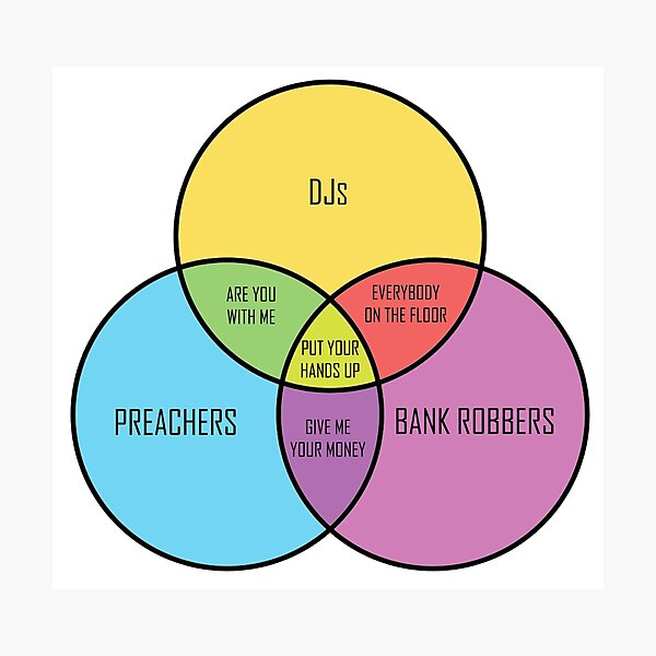 Everybody On The Floor Bank Robbers Djs Put Your Hands Up Give Me Your Money Are You With Me Preachers The Only Venn Diagram That Matters Funny Meme On Me Me