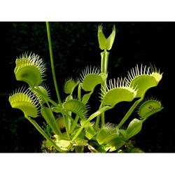 The Venus flytrap (Dionaea muscipula) is a plant that is native to the wetlands of North and South Carolina. It is a carnivorous plant that digests small insects and absorbs nutrients from gases in the air and from the soil. The Venus flytrap reproduces through pollination and also proliferates by forming bulbs.