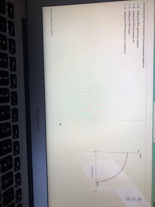 Economic growth can be pictured in the accompanying diagram by B. shifting the PPC upward and outward. (curve was down ward.) Greater economic growth is ...