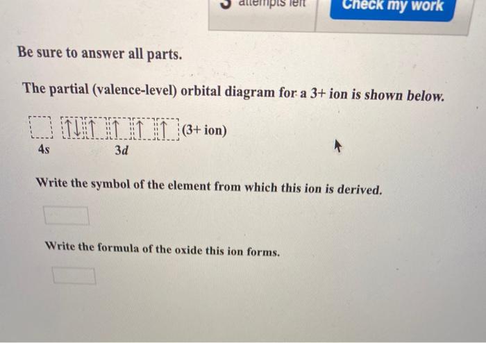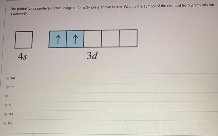 38 the partial (valence-level) orbital diagram for a 3+ ion is shown below.