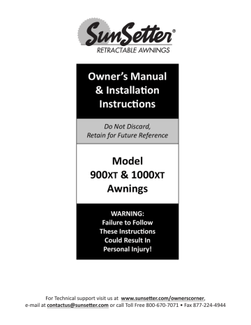 ii READ ME FIRST ! Congratulations! You have just purchased America’s #1 Retractable Awning. The SunSetter Model XT Awning will provide you and your family with many years of enjoyment on your deck or patio.