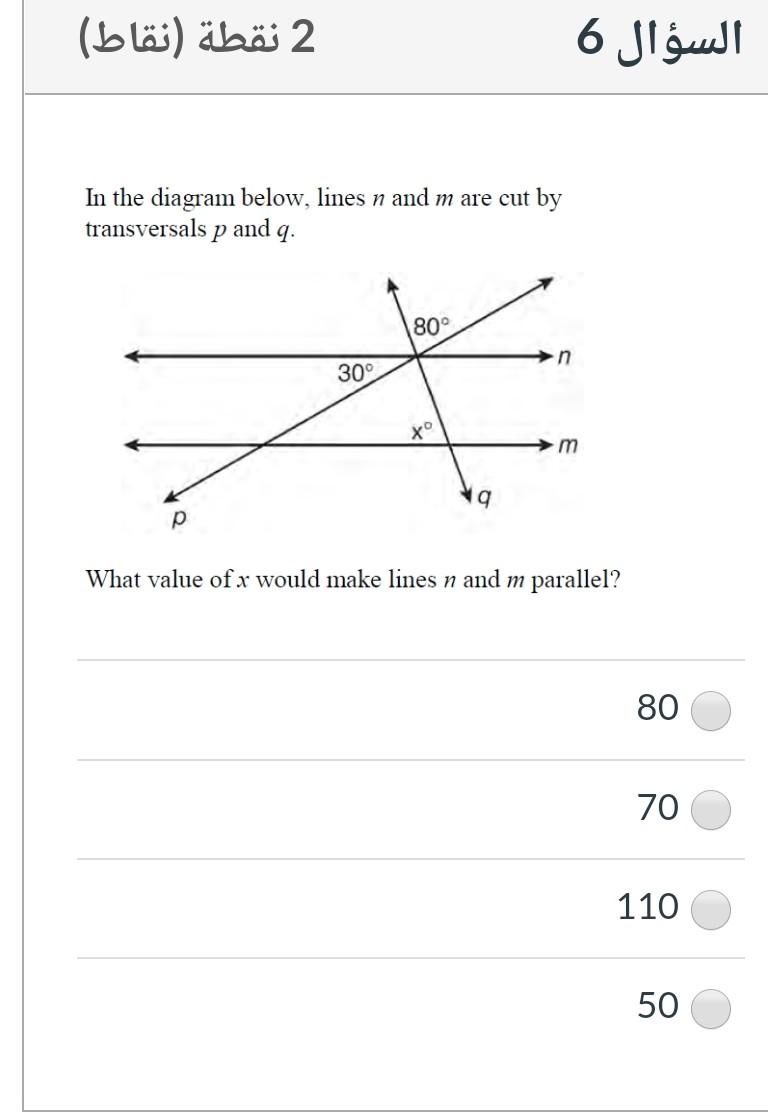 If m O TVQ = 5 x ± 22 and m O VWS = 3 x + 10, for which value of x is! In the diagram below, transversal! In the figure below right, PQ is a transversal to parallel lines JK and LM. ∠2 ≅ ∠6 3. def. Transversal In geometry, a transversal is a line that intersects two or more other (often parallel ) lines.