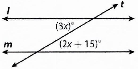 In the diagram below line k is parallel to line l, and line t intersects lines k and l What is the value of x? 1 See answer Advertisement Advertisement bracewellevan493 is waiting for your help. Add your answer and earn points. bluegreen24 bluegreen24 Answer: x = 9
