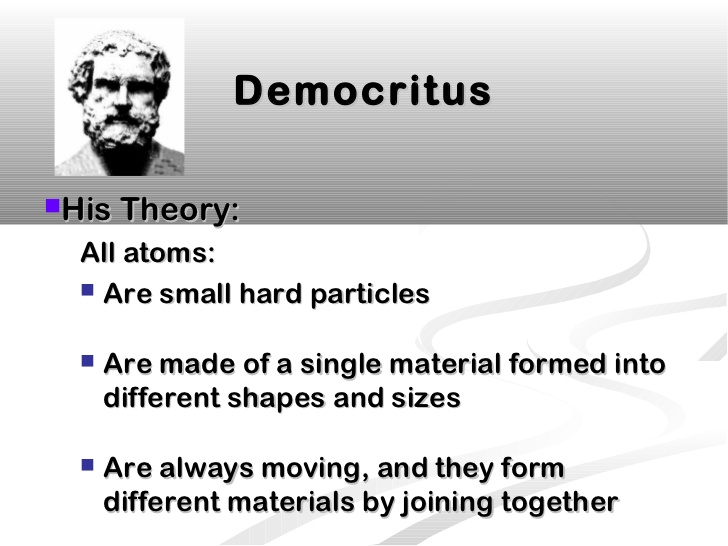 But First, Democritus! Democritus was a Greek philosopher (470-380 B.C.) who is the father of modern atomic thought. He proposed that matter could NOT be divided into smaller pieces forever. He claimed that matter was made of small, hard particles that he called "atomos" Learn democritus atomic model with free interactive flashcards. Choose from 500 different sets of democritus atomic model flashcards on Quizlet. The Atom. By the early 20th century, there was rather compelling evidence that matter could be described by an atomic theory. That is, matter is composed of relatively few building blocks that we refer to as atoms. This theory provided a consistent and unified picture for all known chemical processes at that time.