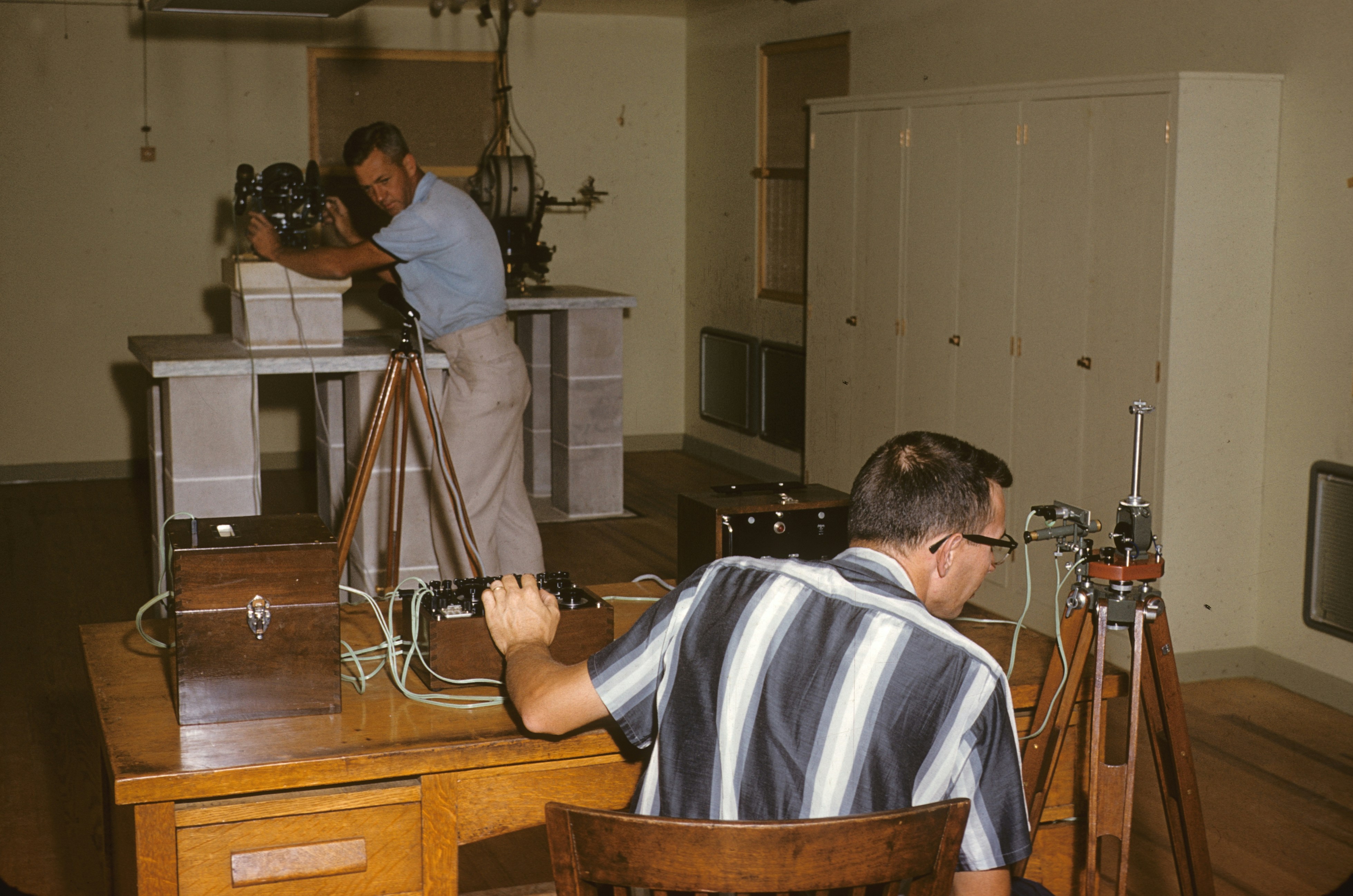 Operating magnetic instruments. The Coast and Geodetic Survey was the Nation's primary geophysical agency until the early 1970's when its geomagnetic duties were transferred to the USGS.