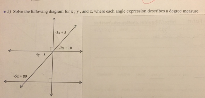 Geometry Q&A Library Use the diagram to solve for x and y. Use the diagram to solve for x and y. close. Start your trial now! First week only $4.99! arrow_forward. Question. fullscreen Expand. Transcribed Image Text. Use the diagram to solve for x and y. check_circle Expert Answer. 14 Dec 2020 · 2 answersHow do you solve for x and y in each diagram? Both diagrams give one of the lines as at right angles to the transversal. The single open arrowhead on both ...How do I calculate the angle x in the following ...6 answers20 May 2016Using the diagram below is it possible to find a numeric ...4 answers12 Sept 2015More results from www.quora.com Step-by-Step Examples. Algebra. Solve for x Calculator. Step 1: Enter the Equation you want to solve into the editor. The equation calculator allows you to take a simple or complex equation and solve by best method possible. Step 2: Click the blue arrow to submit and see the result!
