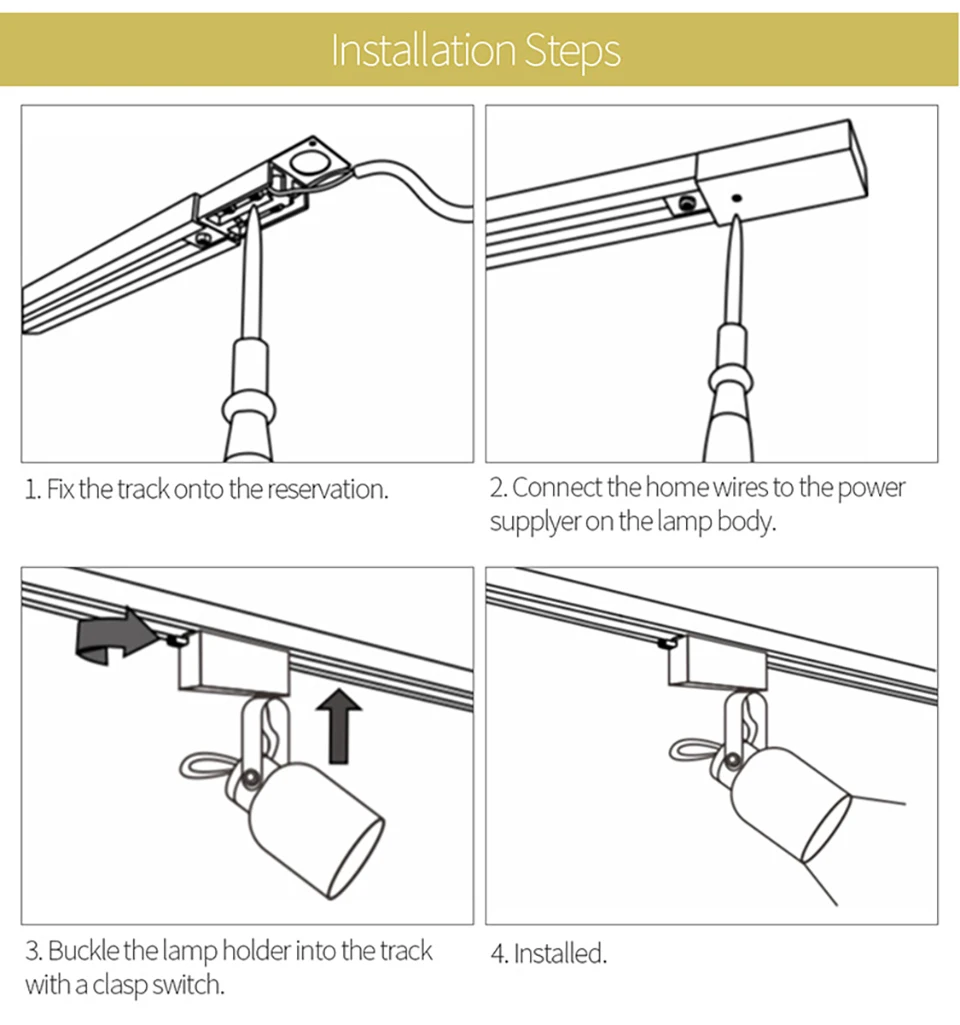 3 Steps to Designing a Track Lighting Installation. 1. Pick a Track Standard. The foundation of any track lighting system is the track itself. The track is the part that attaches to the ceiling or wall and it's what the light fixtures are affixed to. It's important to keep in mind that not all track lights (fixtures) fit all track types.