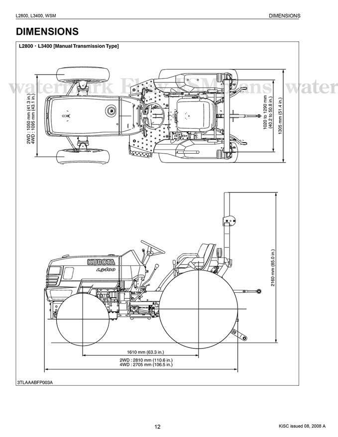 OrangeTractorTalks » Kubota's Online Illustrated Parts Catalog More Than Part Numbers Parts manuals are actually not only just for sourcing part numbers. We use them to help diagnose and plan our dis-assembly and reassembly because they feature exploded-view diagrams, essentially giving us "x-ray vision". They provide peace of mind knowing that the part we have in our hand is the same one on the diagram. Tractor Parts | New, Used, Rebuilt | All States Ag Parts Alternator - Denso Style (12339) fits Kubota L3240 L3430 L3000 L4300 L4330 M5700 M5400 M4700 L3130 L4630 L3400 L3940 L4400 L4240 L3830 M4900 L2600 ASAP Item No. 117622 View Details $3.35 Kubota L3400DT/HST (Dual Traction 4wd/Hydrostatic ... L3400DT/HST (DUAL TRACTION 4WD/HYDROSTATIC TRANSMISSION) CATALOG SEARCH. note: use keywords or part numbers instead of full sentences for best results. examples: 737-3025, 1234, filter, oil, pump, etc. PDF L2800,L3400 (For USA,Canada)(e)-9Y011-13193 This Workshop Manual has been prepared to provide servicing personnel with information on the mechanism, service and maintenance of L2800 and L3400. It is divided into three parts, "General", "Mechanism" and "Servicing". General. Information on the tractor identification, the general precautions, maintenance check list, check and maintenance and ...