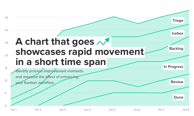 What Is a Cumulative Flow Diagram and How to Use It | ClickUp Blog The cumulative flow diagram also highlights your project time frame along the X-axis. If you see that your work in progress area suddenly flattens out, it's an immediate sign that your Cumulative flow charts also help you easily identify bottlenecks and issues that are slowing down your workflow .