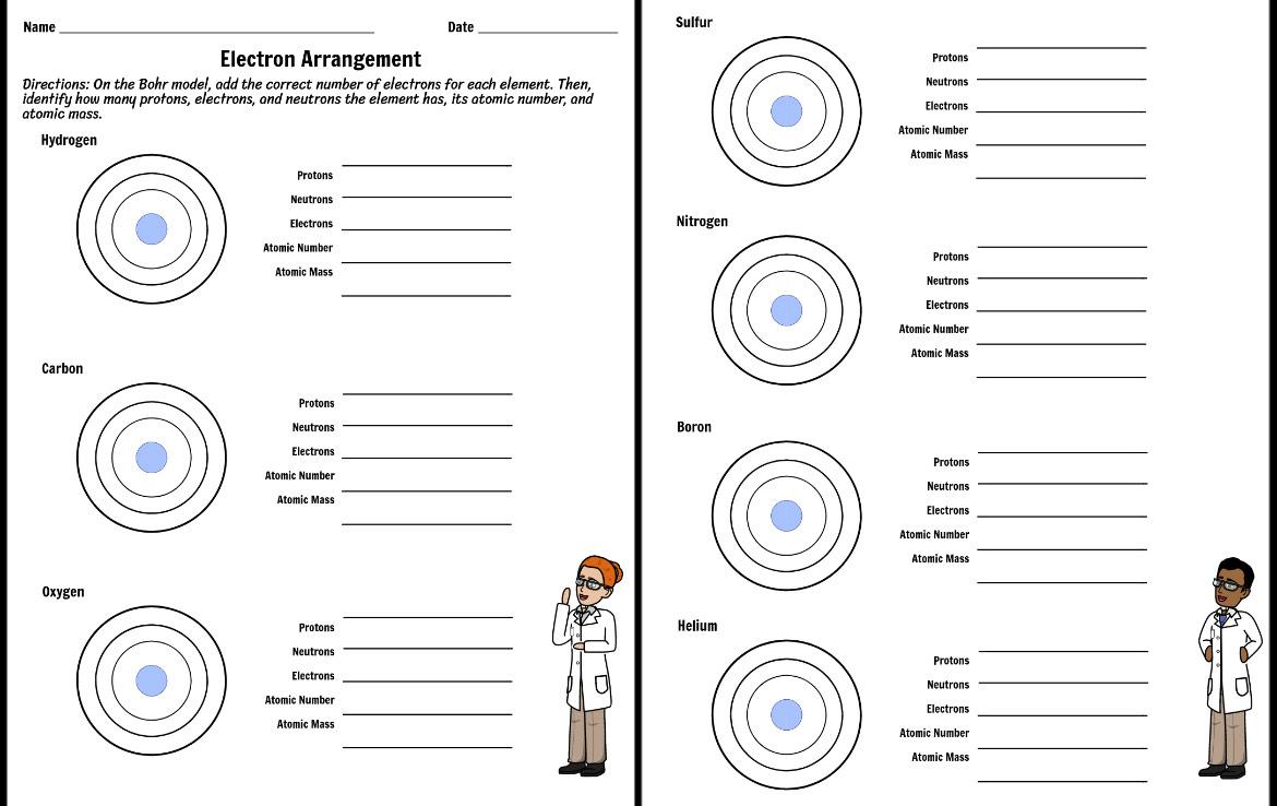 DOC Bohr Diagrams Worksheet - Weebly He: 2p, 2n). Then, draw the individual electrons on the appropriate energy levels (keep in mind the maximum number of electrons allowed on each level). Once you have drawn the Bohr Model, then draw the corresponding Lewis Dot Diagram showing valence electrons. 1. Beryllium - atomic #: 4, mass 9. 2. Sodium - atomic #: 11, mass 23. 3. Sulfur