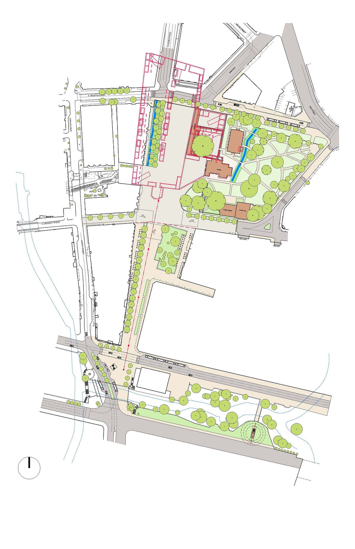 Digital Battlefield | The Alamo Battlefield Diagram This schematic diagram shows the Alamo Plaza area in downtown San Antonio today; 1836 Battlefield walls and footprint included. Trees and vegetation have been omitted to show the structures more clearly. Alamo Street (in pink) runs diagonally across the graphic, north and south across the Battlefield.