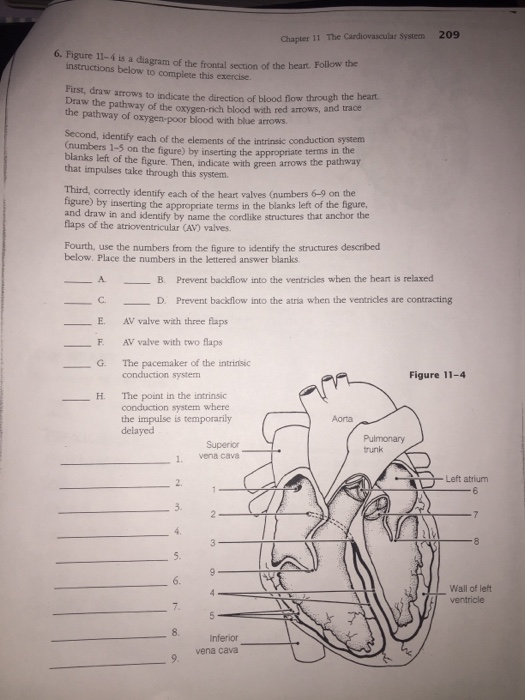 CARDIOVASCULAR WORKBOOK OLA.docx - The Cardiovascular ... Figure 11—4 is a diagram of the frontal section of the heart. Follow the instructions below to complete this exercise. The colored arrows indicate the flow of oxygenated (red) and deoxygenated (blue) blood through the heart.