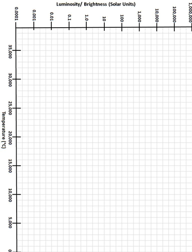 PDF HR diagram lab - White Plains Public Schools HR diagram lab H. R. Diagram Lab Directions Step #1: Look at the chart on the next page to identify each star's temperature and luminosity. Plot the characteristics of each star on the chart titled, "Characteristics of Stars". Be sure to label each star's name next to its data point on the chart. PDF Creating a Hertzsprung-Russell Diagram - Environmental Science Hertzsprung - Russell diagram. Procedure: 1. Take a look at the figure of the constellation Orion. The circles represent the stars of the constellation Orion. The diameter of the stars represents their magnitude. 2. Trace the stars on another sheet of paper. 3. Color each star with the appropriate color and then cut them out. PDF The Hertzsprung-Russell Diagram and Stellar Evolution The Hertzsprung-Russell Diagram and Stellar Evolution Names: _____ The H-R Diagram and Stellar Properties Activity 1. In which corner of the diagram (upper right, upper left, lower right, or lower left) would stars with radii 1000 times larger than that of the Sun be plotted? HR Diagram - interactive simulations - eduMedia The Hertzsprung-Russell diagram (or HR diagram) is constructed in logarithmic coordinates. In this graphic construction, each star is a point marked on the ordinate by its brightness (luminosity or absolute magnitude) and on the abscissa by its spectral type (or surface temperature). By making such a graph for a cluster of stars, H.N. Russell publishes an article in Nature in 1914 where he ...