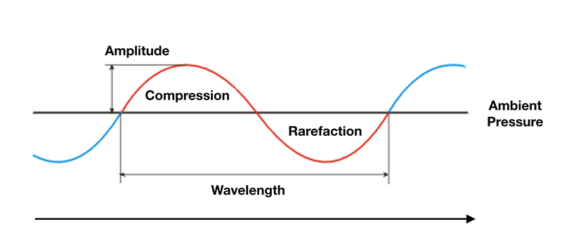Sound Waves | PASCO Sound wave diagram. A wave cycle occurs between two troughs. Units of Sound. When we measure sound, there are four different measurement units available to us. The first unit is called the decibel (dB). The decibel is a logarithmic ratio of the sound pressure compared to a reference pressure. The next most frequently used unit is the hertz (Hz).