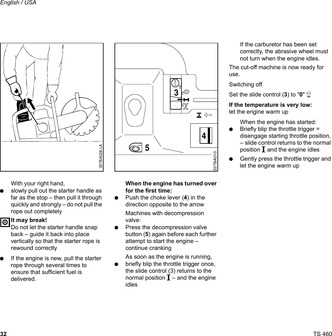 PDF Stihl Ts 460 STIHL TS 460 Cutquik ... parts and controls. See the appropriate section of your instruction manual for a description of the controls and function of the parts of your model cut-off machine. Safe use of a cut-off machine involves - the operator - the cut-off machine