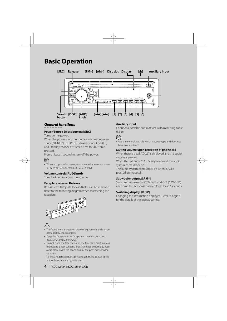 Kenwood Car Video System KDC-MP142 User Guide ... Kenwood KDC-MP142 Car Video System User Manual. Take the time to read through this instruction manual. performance from your new CD-receiver. warranty card, and in the space provided below. Refer to the model and serial numbers. whenever you call upon your Kenwood dealer for information or service on the product.