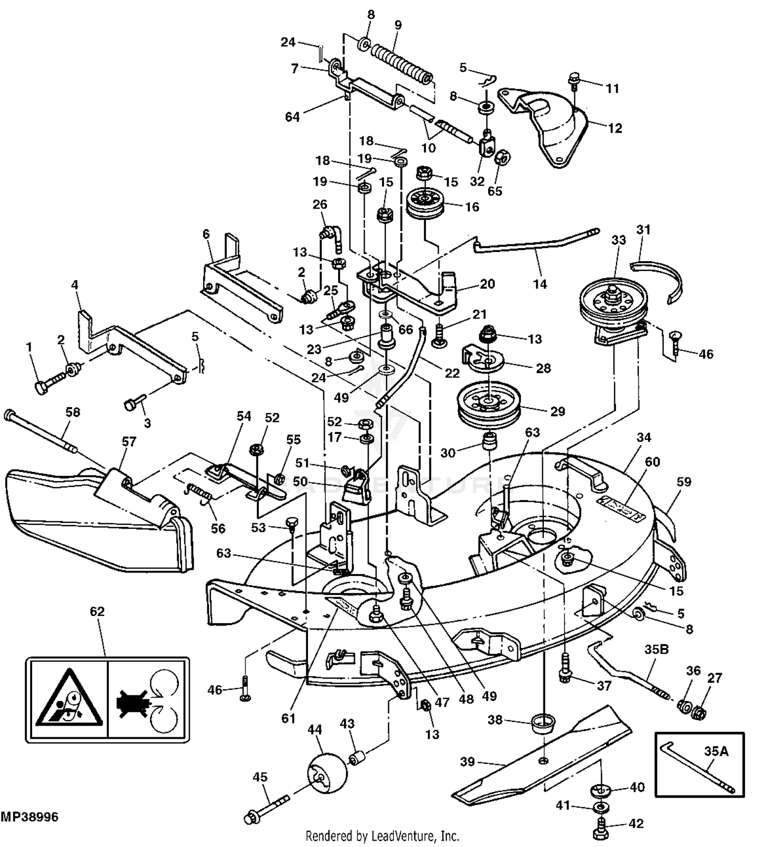 ARIMain - WEINGARTZ - lawn mower parts MOWER DECK 38" 97CM: MOWER DECK & LIFT LINKAGE. Sabre 1438 Lawn Tractor -PC2675.