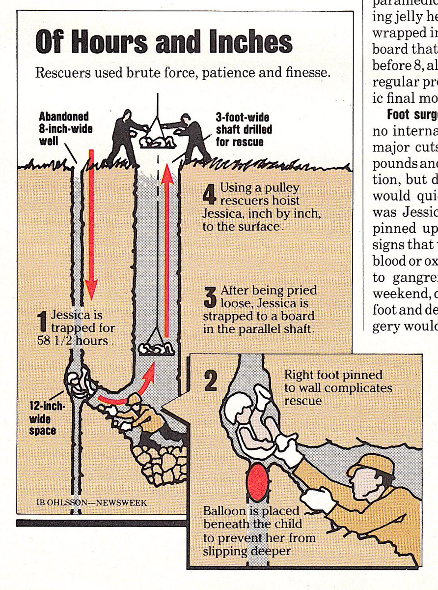 › baby-jessica-wellBaby Jessica fell down a well in 1987. This is her life in 2020. May 10, 2020 · The photos captured Jessica cradled in the arms of a paramedic, her head wrapped in white gauze, her arms caked in dirt, and her eyes barely open. One of them even won a Pulitzer Prize. Rescuers worked for 58 hours to free "Baby Jessica" from a well. Image: David Woo/Sygma via Getty. Baby Jessica underwent 15 surgeries in the next few years. time.com › 4980689 › baby-jessica-30th-anniversaryBaby Jessica Rescued from the Well: 30 Years Later | Time Oct 16, 2017 · One of those weeks was 30 years ago, when 18-month-old Jessica McClure, nicknamed “Baby Jessica,” fell into a well in Midland, Texas, on Oct. 14, 1987. She had gotten trapped in a dogleg in ... PDF on writing THE GIRL IN THE WELL IS ME It happened pre-internet, yet Jessica's story was everywhere, on the news every night and in the paper every day. The stories included diagrams of how the well would be approached to get Baby Jessica out with the least danger. I'd forgotten how long she was in there, but in my memory, it was several days at least. It was all anyone could Do You Recognize These Influential Diagrams? 100 Diagrams That Changed the World is a beautiful book that features sketches and plans that marked major breakthroughs in human understanding, from cave paintings to the DNA double helix to the...