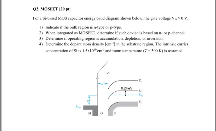 Draw and explain energy band diagram of MOS capacitor in ... Fig1 energy band diagram and MOSFET internal charge distribution in accumulation region Where E C = conduction band energy level E F = Fermi energy level E V = valance band energy level E i = intrinsic energy level Q = charge of electron V g =voltage applied on gate Φ s =surface voltage