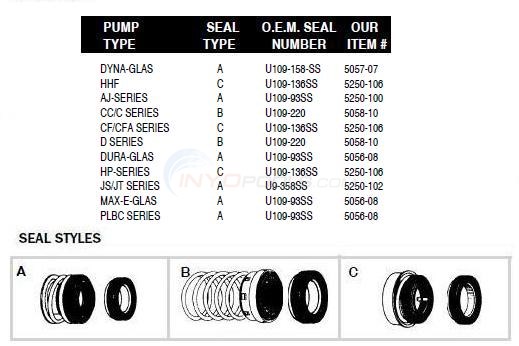 Kleen-Rite Corporation - Sta-Rite Pump Parts Sta-Rite U109-433SS Centrifugal Pump Shaft Seal - 3 HP, D-Series Pumps